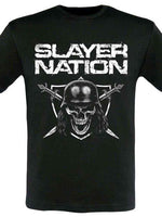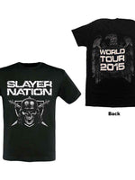 Official licensed Slayer Unisex T-Shirt featuring the 'Slayer Nation 2015 Dates' design motif. High quality T-Shirt available in a black colourway.